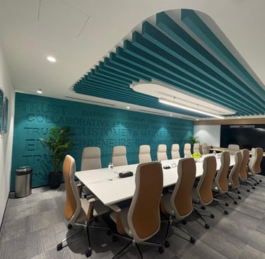 Modern office fit-out blending functionality with stylish design in a bustling business hub.